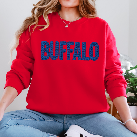 Buffalo Faux Red Yarn Crochet T-Shirt or Sweatshirt