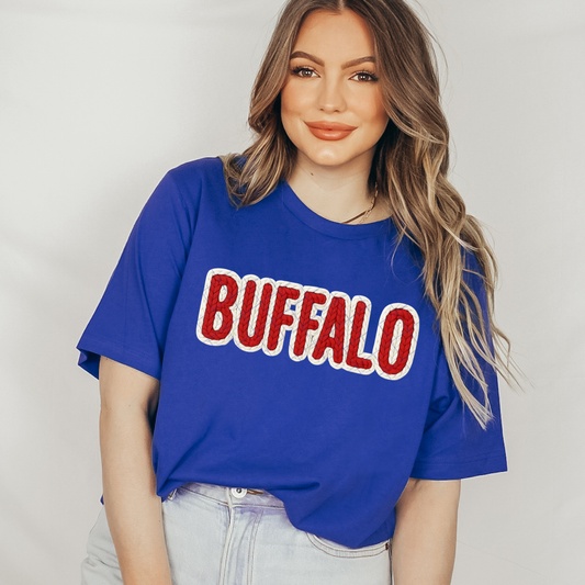 Buffalo Faux Blue Yarn Crochet T-Shirt or Sweatshirt